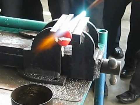 Una demostración teórica-practica a los alumnos del 4 to "E" Matriceria, del Procedimiento de como se sueldan las pastillas carburadas con el equipo oxiaceti...