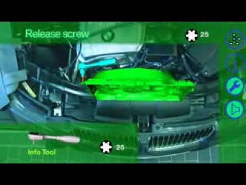 Más información y vídeos de tu sector en www.infotaller.tvEl profesional del taller aproxima sus herramientas y abre el capó. Se pone unas gafas de sol y ve los componentes del motor en tres dimensiones. Una voz le explica cada uno de los pasos a seguir para arreglar el coche mientras él los ve al detalle a través de sus gafas. Un vídeo de InfoCap TV. Más información de tu sector en www.infocap.es/posventa
