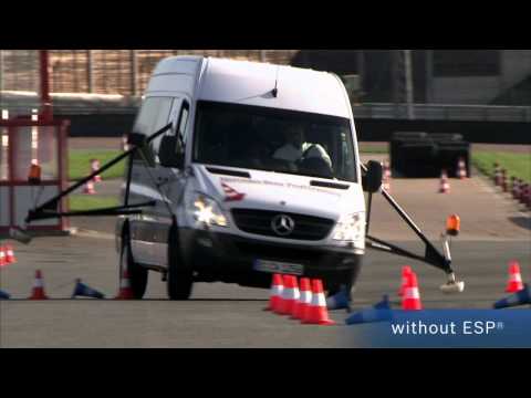 ESP® keeps light trucks in their lane even after a sudden swerve, as this example showing the maneuver with and without ESP® shows.