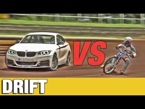 On the Monday morning after Germany had won the football World Cup final against Argentina, the Landshut/Ellermühle speedway stadium at the AC Landshut club witnessed one of sport’s more unusual match-ups. It was the first time a representative of a leading German car magazine took a BMW M235i with M Performance Parts onto the almost 400-metre-long track to compete in a drifting contest against BMW motorcycle dealer and four-times dirt-track world champion Karl Maier on a speedway bike.
