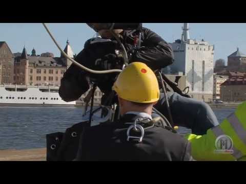 There are a lot of ways to do things. And after what we´ve seen, we can say that the Volvo Trucks people have a very original way of doing things. Their own president, Claes Nilsson, stood on the rack of a Volvo FH hanging 20 meters above water.