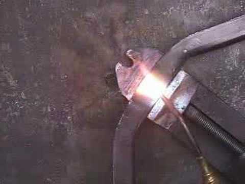Vídeo demonstrando um material sendo soldado utilizando oxigênio e acetileno.