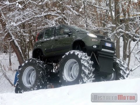 No es una alucinación. El Fiat Panda Big Foot... ¡existe!, y buena prueba de ello son estas imágenes. Blancos se han debido quedar más de cuatro atónitos esquiadores cuando han visto aparecer al pequeño Fiat Panda Climbing 4x4 vestido de esta guisa y circulando a sus anchas por la nevada estación de esquí italiana de Val D´Aosta.